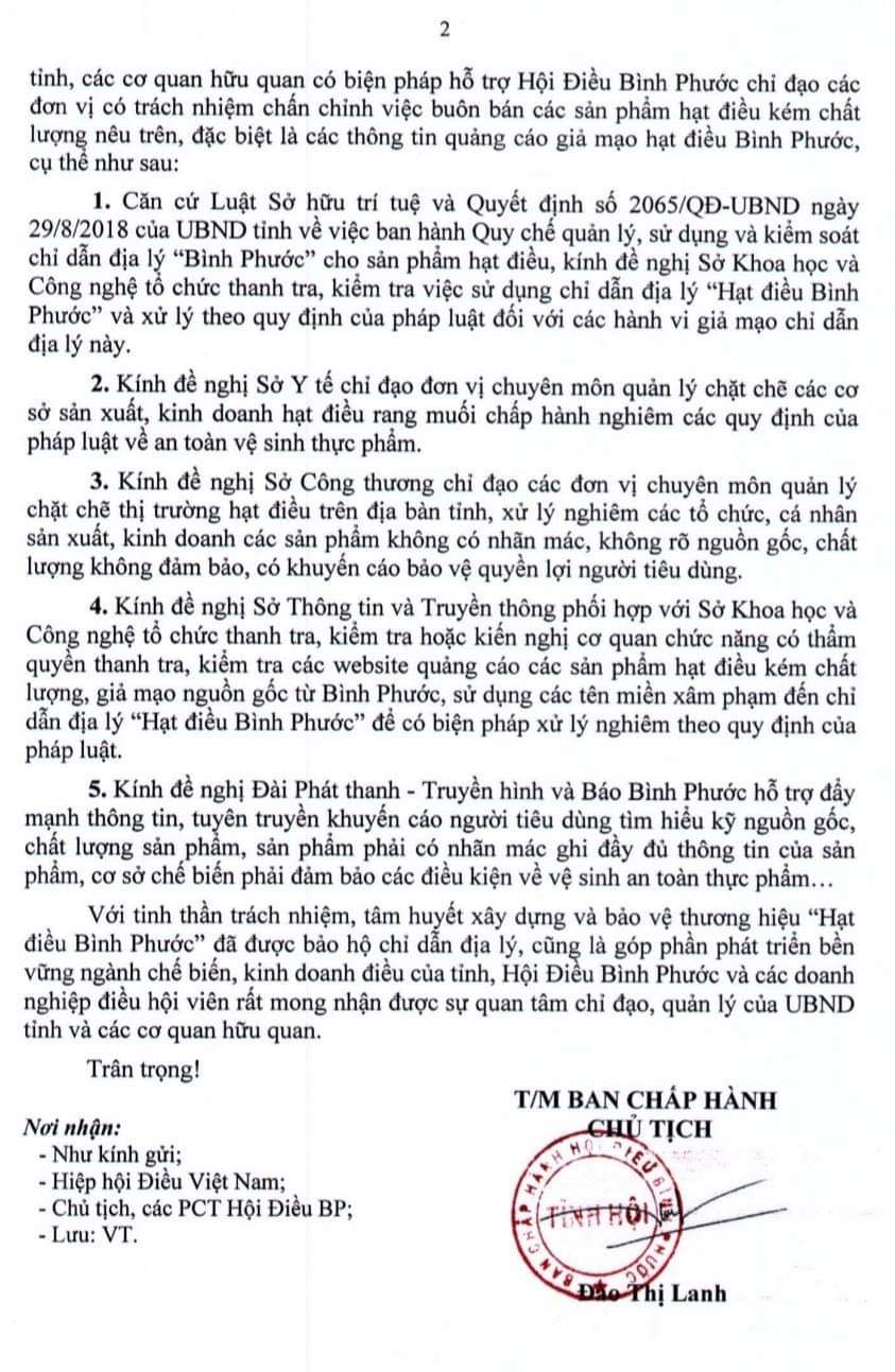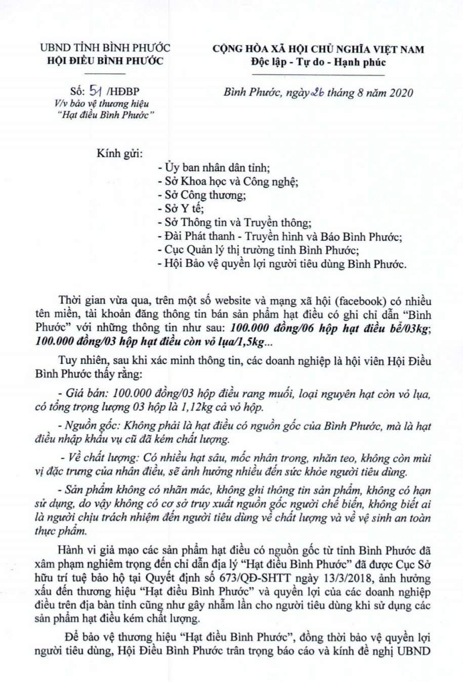 CÔNG VĂN CẢNH BÁO CỦA HỘI ĐIỀU BÌNH PHƯỚC
